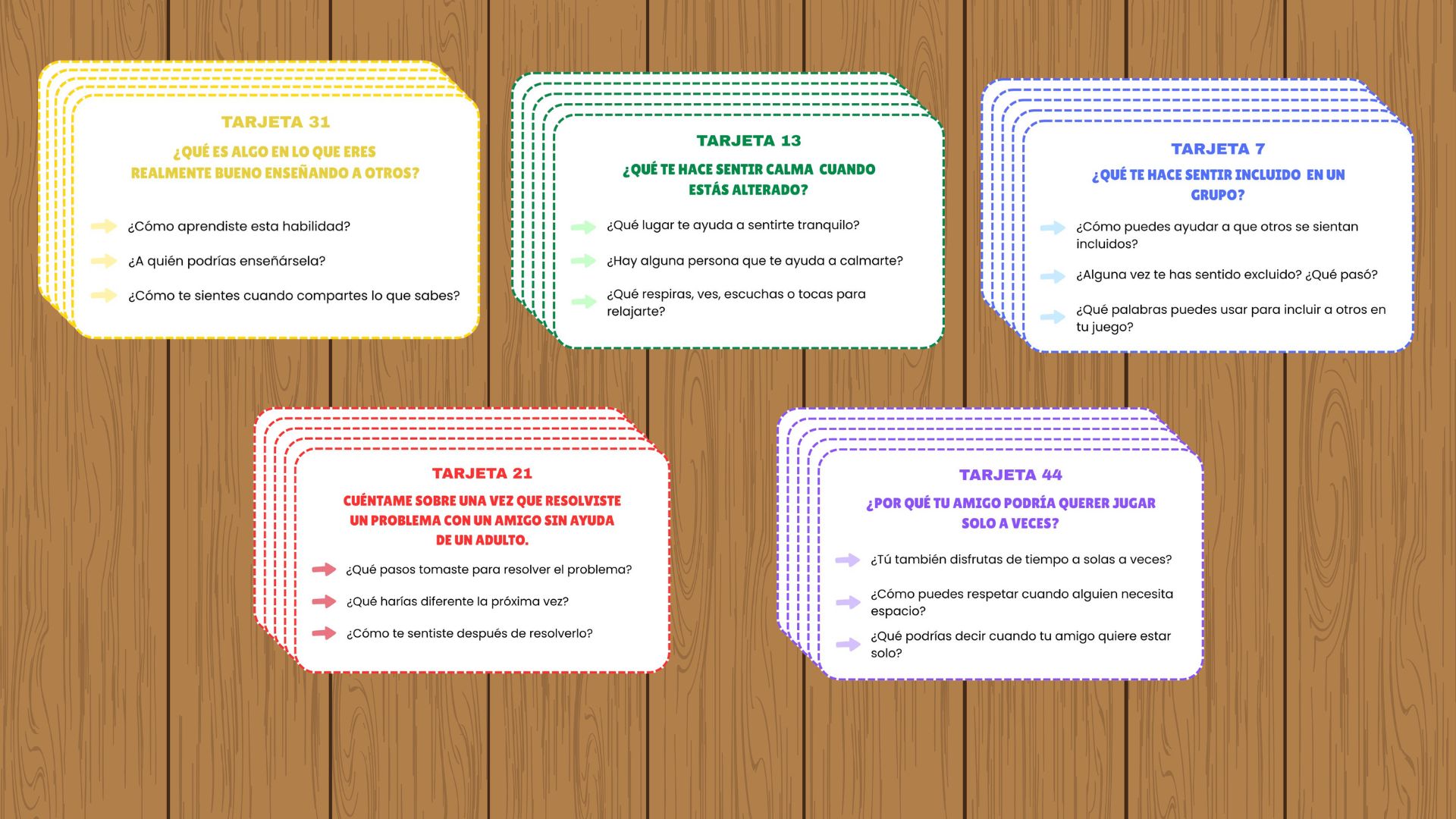 50 tarjetas con preguntas para generar conversaciones sobre emociones y amistades de forma natural y divertida.
